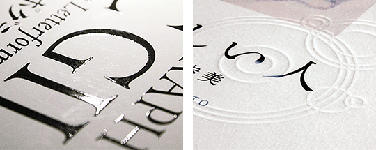 表紙に箔押しやエンボス(浮きだし加工)を施すことで、オリジナリティと高級感が大幅にアップします。合わせて、風合いのある紙に変更するのもオススメ。