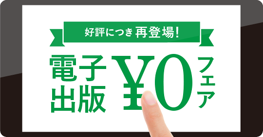 紙の書籍の出版を申込むと、電子出版が無料! 電子出版¥0フェア(6/1~7/31)。