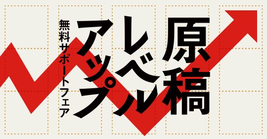 最大1,000字添削+文章講座本をプレゼント。 原稿レベルアップ無料サポートフェア。 (12/3~1/31)
