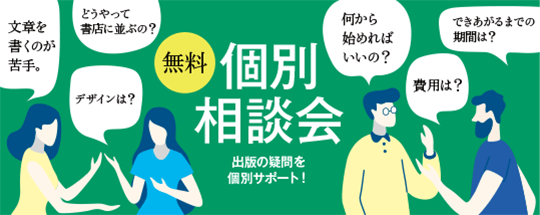 個別相談会では、「何から始めればいいの?」「費用は?」「どうやって書店に並ぶの?」などなど、出版に関するあらゆるご相談や疑問にお答えすることはもちろん、希望をヒアリングしたうえで、さまざまな観点から最適な出版プランをご提案します。「本が完成するまでの流れが分かった」「丁寧にリードしてもらえて出版への不安がなくなった」など、ご好評をいただいています。