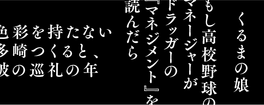 実際にタイトルを決めるにあたって、どんな風に考えれば良いの?という方もいるはず。そういった方は、ベストセラーになった本や書店で販売している本を参考にしてみましょう。ここ十数年で登場し現在でも流行しているものは、タイトルが一文になっているような長いもの。エンターテインメント小説から広がった文化ですが、その後『もし高校野球のマネージャーがドラッガーの『マネジメント』を読んだら』(ダイヤモンド社 2009年 岩崎夏海・著)や『色彩を持たない多崎つくると、彼の巡礼の年』(文藝春秋 2015年 村上春樹・著)など、他ジャンルにも広がっています。また、『くるまの娘』(河出書房新社 2022年 宇佐美りん・著)のような、相いれない二つの言葉を掛け合わせたタイトルも最近では印象的です。アプローチこそ真逆ですが、どちらも興味を惹いて手に取ってもらいやすくする戦略をとったタイトルといえるでしょう。