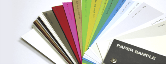フィルムを貼り付けるPP加工は、強度はあがるものの、紙の質感が損なわれます。紙の風合いを活かしたいときには「ニス引き加工」がオススメ。ニスを塗ることで表面を保護し、傷や汚れから守ります。PP加工と比べると耐久性、耐水性の面では劣りますが、紙+デザインでより個性を引き出す、特殊紙には欠かせない加工です。